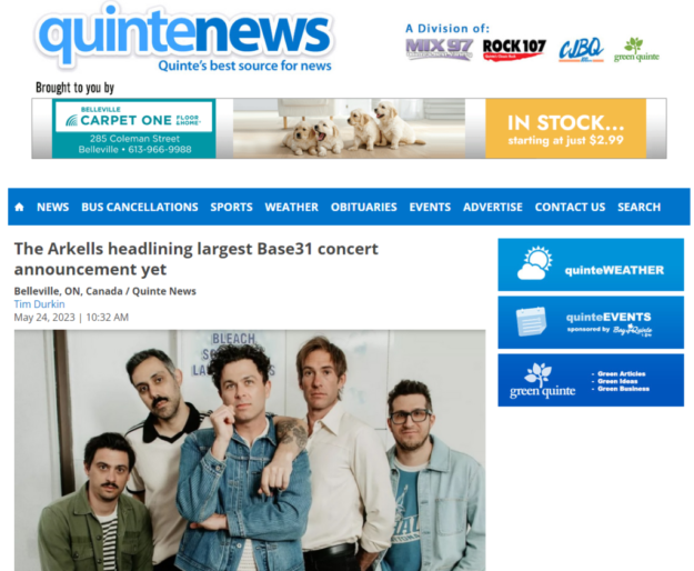 The biggest concert announcement to date is coming out of Base31 in Prince Edward County.