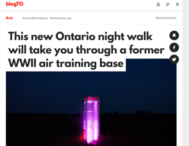 A new nighttime art walk is coming to Ontario this June, and it’ll take you through Base31, a former WWII air training base located just 2.5 hours from Toronto in Prince Edward…
