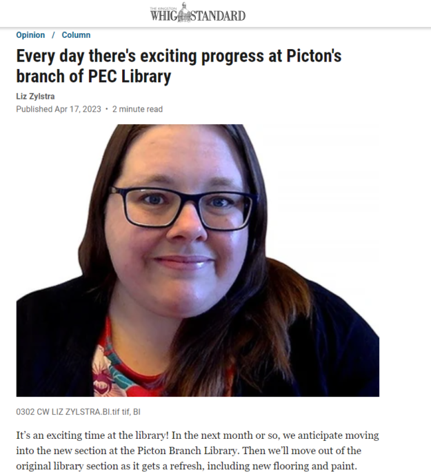 It’s an exciting time at the library! In the next month or so, we anticipate moving into the new section at the Picton Branch Library. Then we’ll move out of…