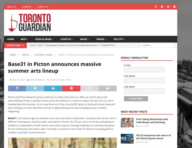 Base31 Announces new concerts: Amy Armstrong and Jackie Richardson Coming to Prince Edward County Historic Sergeants Mess Hall building to host first gala May 13 Picton, ON — Two…