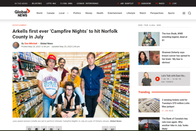 Before turning attention to their Laundry Pile, Arkells will head outdoors this summer for a pair of intimate performances in the spirit of their Campfire Chords.