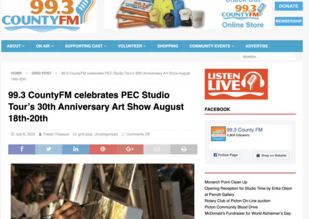 99.3 CountyFM celebrates PEC Studio Tour’s 30th Anniversary Art Show August 18th-20th