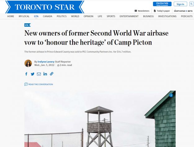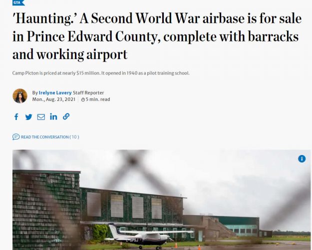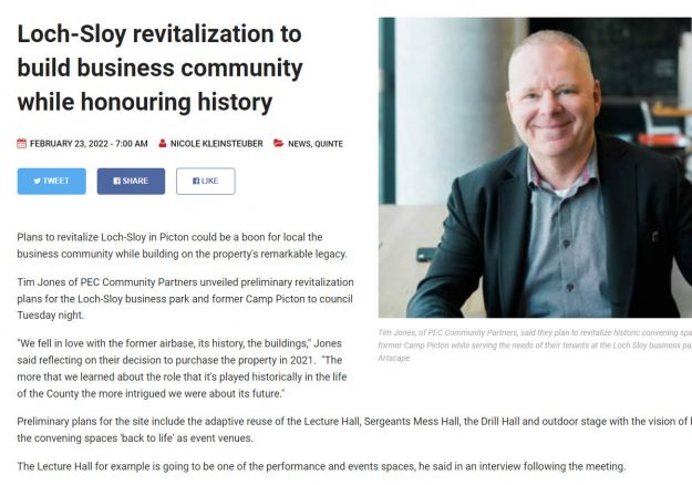 The former WWII airbase, a 700-acre property which includes the former Loch-Sloy Business Park and Picton Airport Lands has been sold to Ontario-based PEC Community Partners Inc.