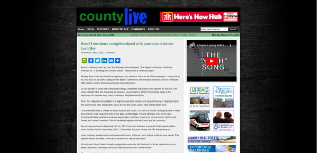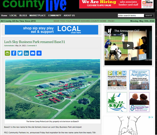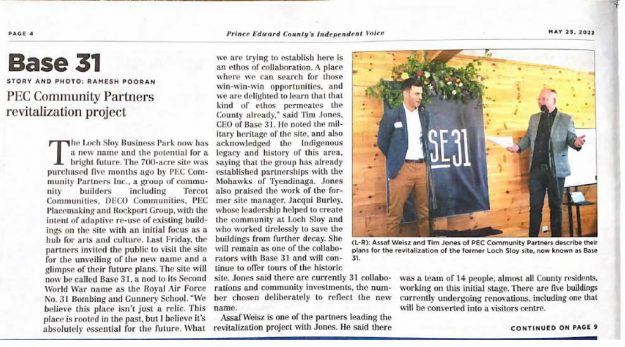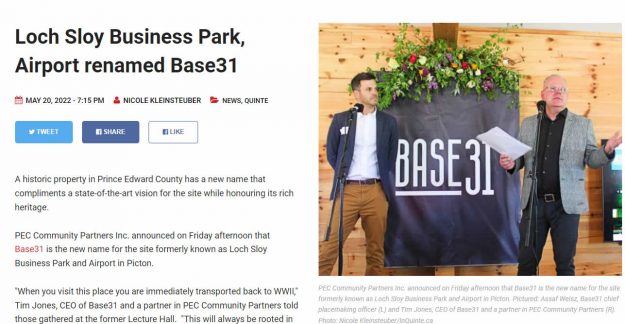 On May 20, PEC Community Partners Inc., christened its vision for the now former Loch-Sloy Business Park and Picton Airport lands as “Base31.”