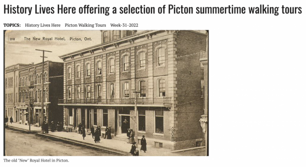 One of Prince Edward County’s preeminent historians is offering a summer walking tour that promises to delve deep into the hidden history of this community.