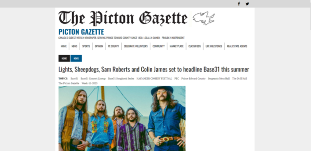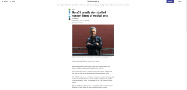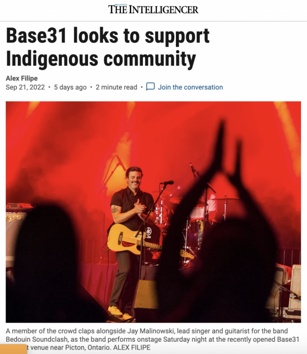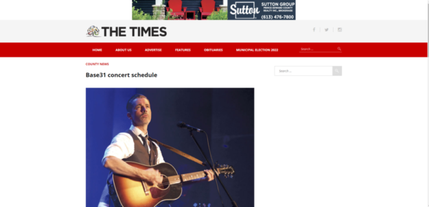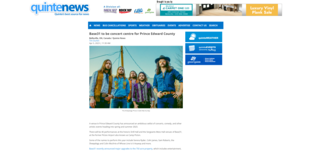 The biggest concert announcement to date is coming out of Base31 in Prince Edward County.