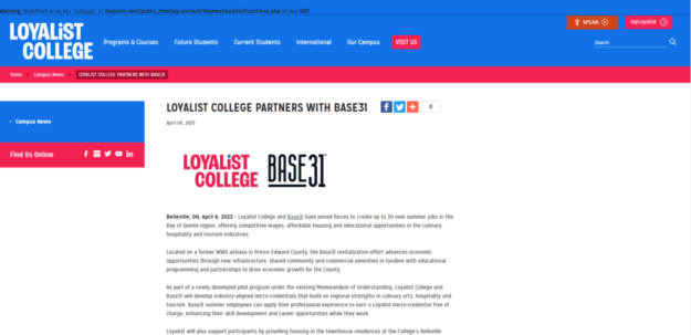 Loyalist College is teaming up with Base 31 to provide new job opportunities in the community
